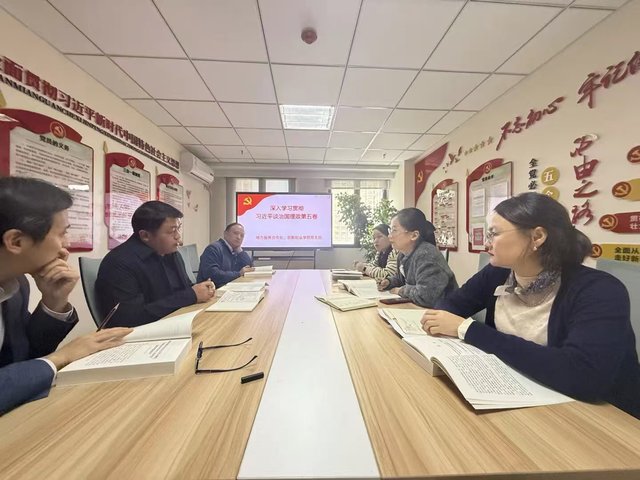 10月27日上午,地方服务合作处、创新创业学院党支部组织开展了《习近平谈治国理政》第五卷集中学习活动。 党支部书记张应杰介绍了该书的重要意义和整体框架,并带领全体党员学习了习近平总书记在中国共产党第二十次全国代表大会上的报告。支部成员王慧、丁婧分别领学了相关内容。在交流研讨环节,与会人员纷纷结合自身工作实际,进一步加深了对习近平新时代中国特色社会主义思想的理解和认同。