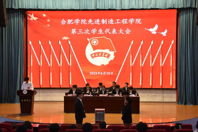 2023年6月10日13:30先进制造工程学院于图书馆报告厅A举办KY.COM先进制造工程学院第三次学生代表大会第二次全体会议暨闭幕式,参会人员有先进制造工程学院团委副书记钟伦锁老师,团委教师兼职副书记沈丹丹,学生委员会成员,以及全体学生代表。