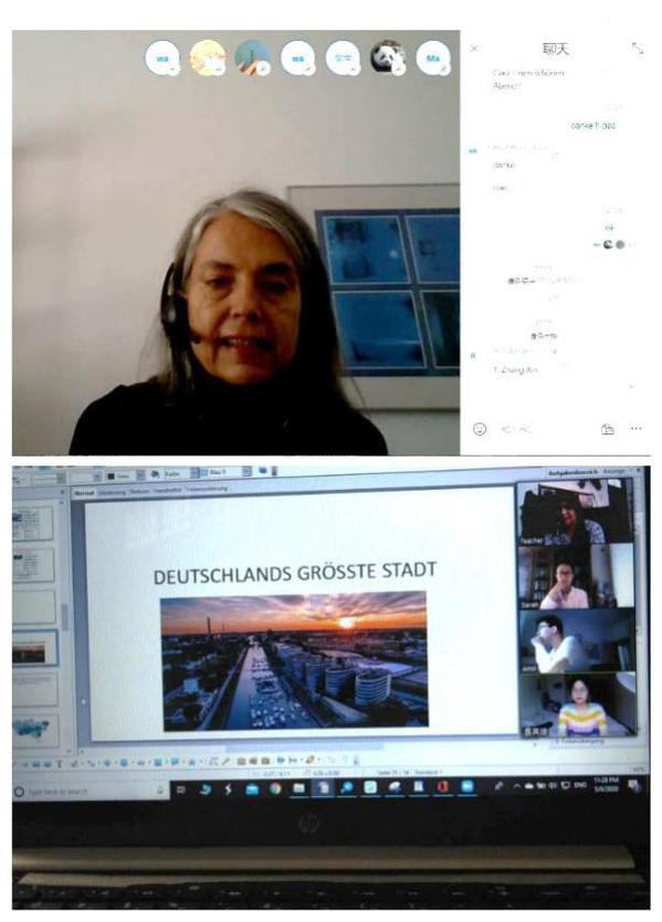 German teacher Loiswida Hansjuergens uses the Zoom platform for live classes together with PPT, audio and video materials and mind maps to create a relaxing and pleasant online atmosphere for learning German.