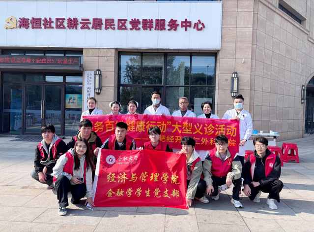 2024年11月12日,合肥大学金融学学生党支部党员与第十一期入党积极分子前往海恒社区耕耘居民区开展社区“义诊”志愿服务活动。