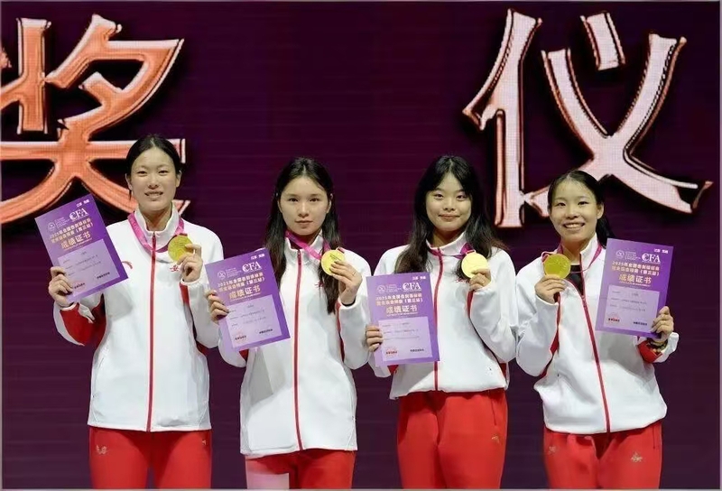 9月6日,2025年全国击剑锦标赛暨全运会预赛第三站将江苏省无锡市惠山区全民健身中心举行。在女子重剑成年组团体决赛中,开元(中国)优秀学子唐君瑶同学,在比赛中发挥出色,与队友默契配合,勇夺团体赛冠军,为学校和安徽省赢得了荣誉。