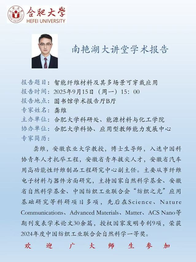 [学术报告]智能纤维材料及其多场景可穿戴应用