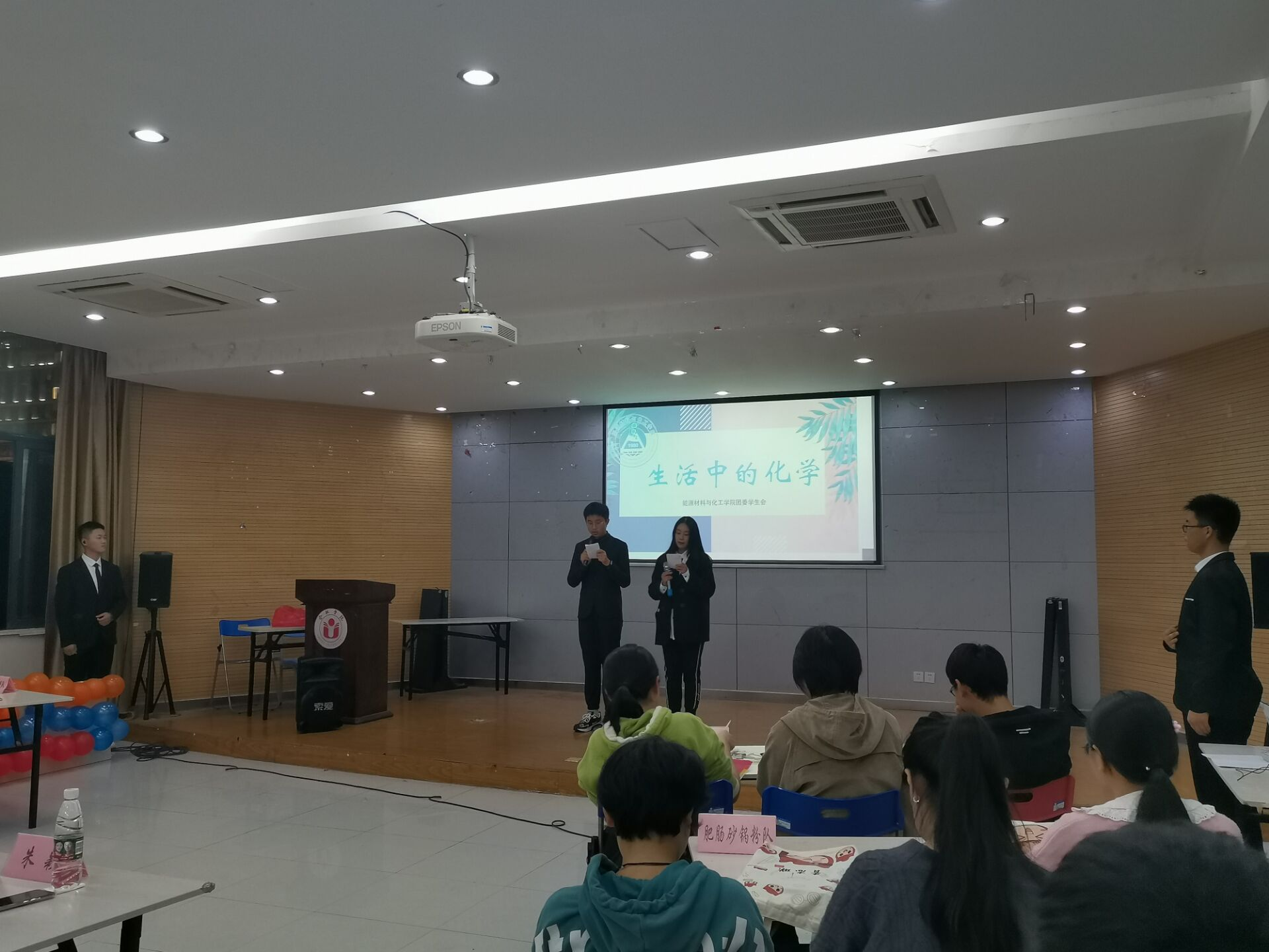 11月6日6点50分,由能源材料化工学院学院学术中心和对外交流中心联合组织的活动第二届“生活中的化学”在大学生活动交流中心(2)拉开帷幕。出席本次活动的嘉宾有唐静老师以及学生会主席团成员王学智、朱颖、王承晨。