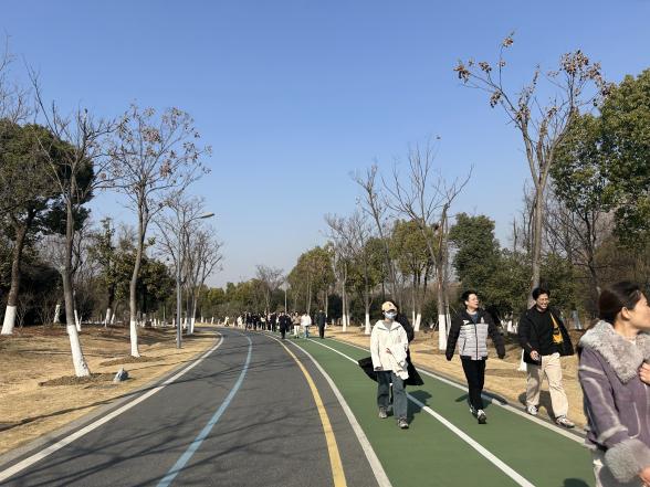 参加活动的师生在南艳湖公园西门集合完毕,学院党委书记李秀娟宣布“健步走”活动正式开始。师生们沿着南艳湖公园塑胶跑道,迈着矫健的步伐,开始了这场健康之旅。整条路线全长约5公里,途经公园标志性建筑和多处景观。行走过程中,大家相互交流、拍照留念,气氛轻松愉悦。师生们纷纷表示,通过这样的活动,不仅增强了身体素质,还增进了彼此间的友谊。