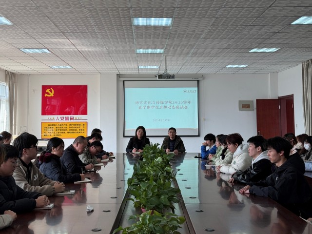 2月19日中午12:00,语言文化与传媒学院新学期学生思想动态座谈会在一区善思楼C座2楼会议室召开。本次座谈会由语言文化与传媒学院党委副书记张爱萍主持,副院长殷明明、教学办主任章衡、本科生辅导员顾盼盼、窦思佳、柳守志、陈伟出席会议,各班班委代表和学生代表参会。