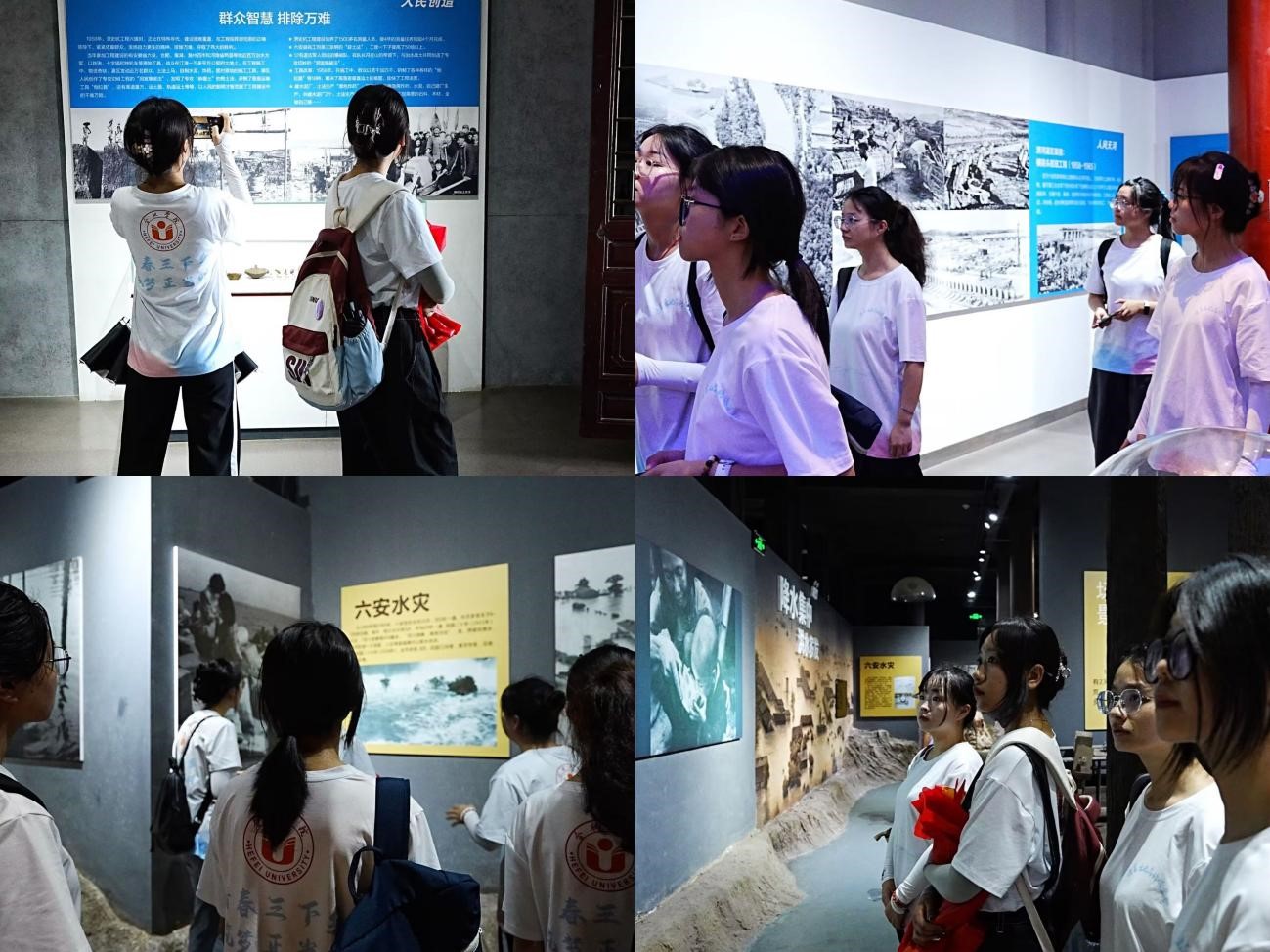 “青山绿水红土地,人间奇迹淠史杭”,志愿者们首先来到淠史杭工程展览馆。淠史杭工程长达14年的治水实践,铸就了新中国水利建设史上的奇迹,也诞生了伟大的淠史杭精神,它与“坚贞忠诚、牺牲奉献、一心为民、永跟党走”的大别山精神一脉相承,延续着老区的红色基因。淠史杭展览馆既是展示淠史杭水利工程全貌的窗口,也是具有水利特色、进行爱国主义教育的宣传展示基地。展览馆通过历史图片、实物、音视频和场景再现等方式全面展现了淠史杭水利工程设计、施工、效益发挥的历史瞬间。志愿者们在参观中深刻感受到淠史杭工程的伟大以及先辈建设者们的独具匠心。
